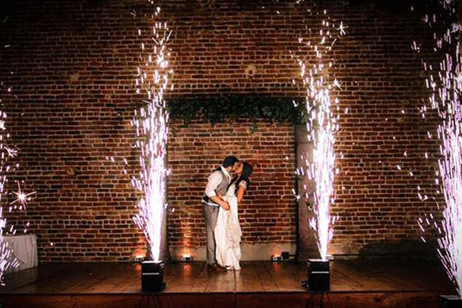 Cold spark machines are particularly popular for the moment a couple enters the reception for their first dance — the doors open, the machines fire, and the couple walks through a corridor of sparkling light. It's one of the most dramatic and memorable moments of any wedding evening.